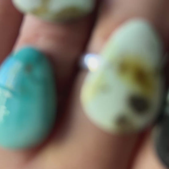Create your own custom Falmouth stone ring. Pick from these juicy six stones. We will work together to fully customize your dream ring. You will select hammered or smooth ring band, orientation of stone, ring size, and any other custom details you might want to add on (additional cost).