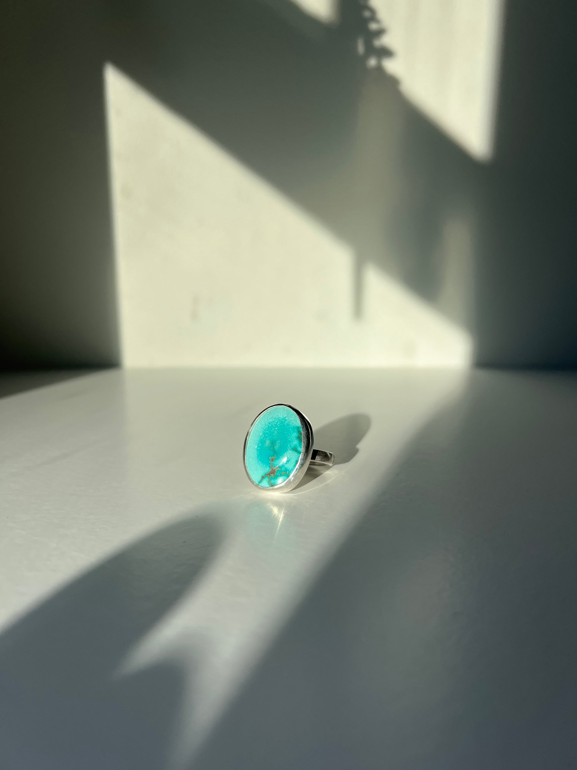 Carico Lake stone. Set in sterling silver. Size 8.25. Smooth comfort fit band. Can be sized up slightly.
