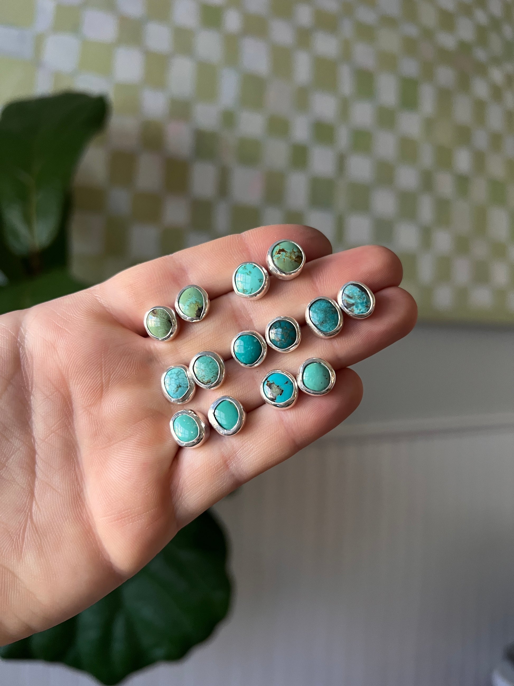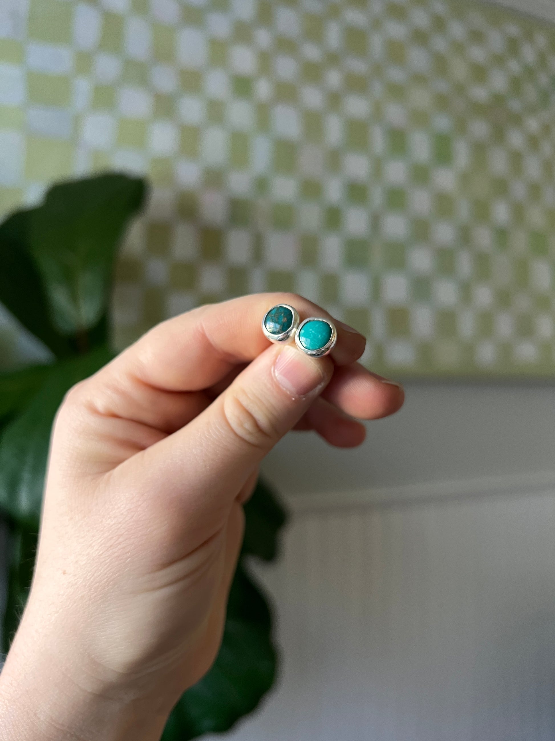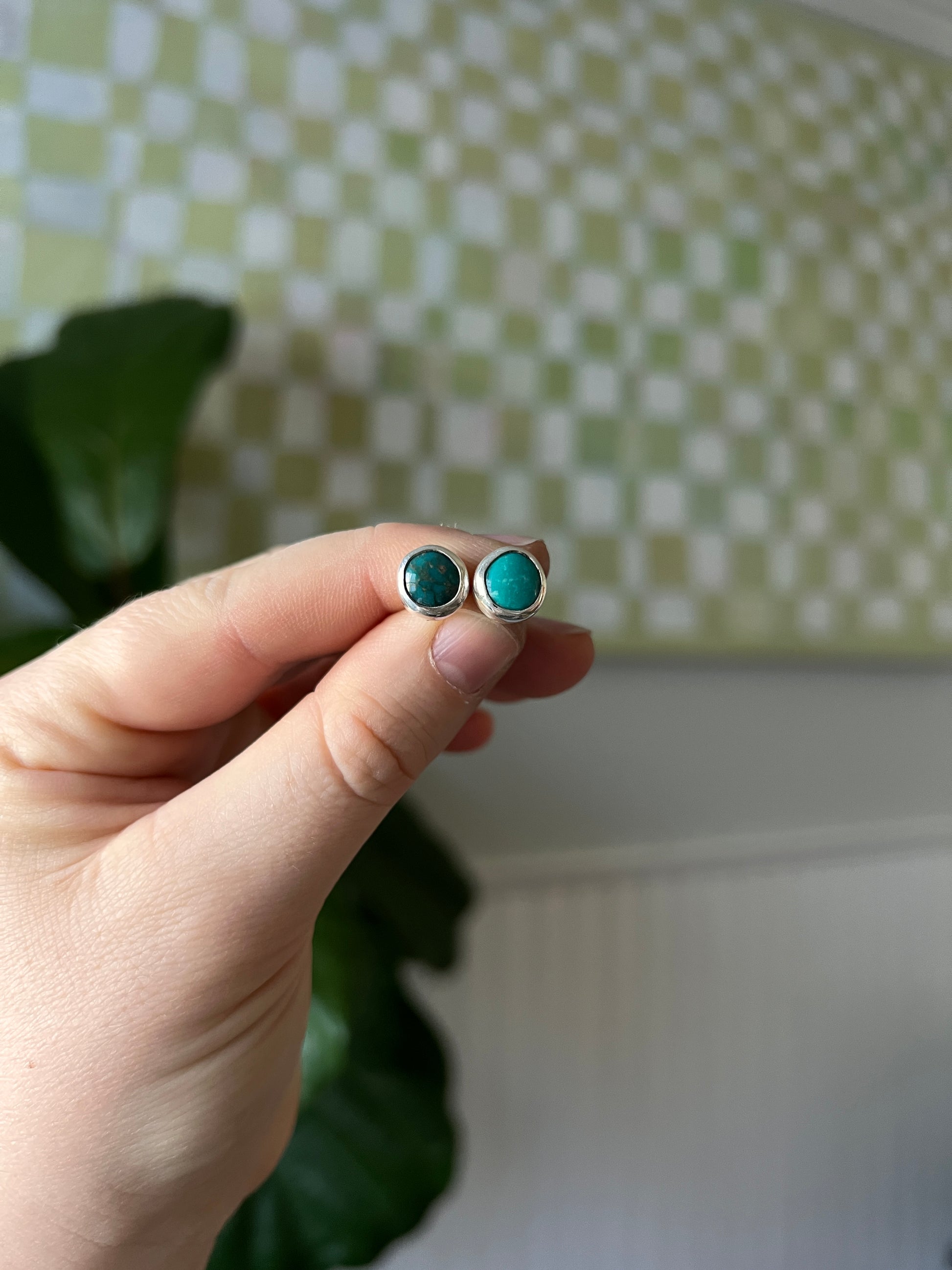 Natural Turquoise Mountain stones set in sterling silver. These earrings will surely spice up any outfit with a hint of the unexpected.