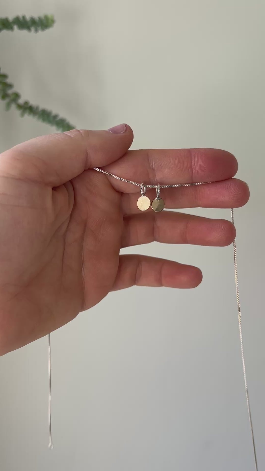 14k yellow gold dot on a sterling silver chain box or ball chain.