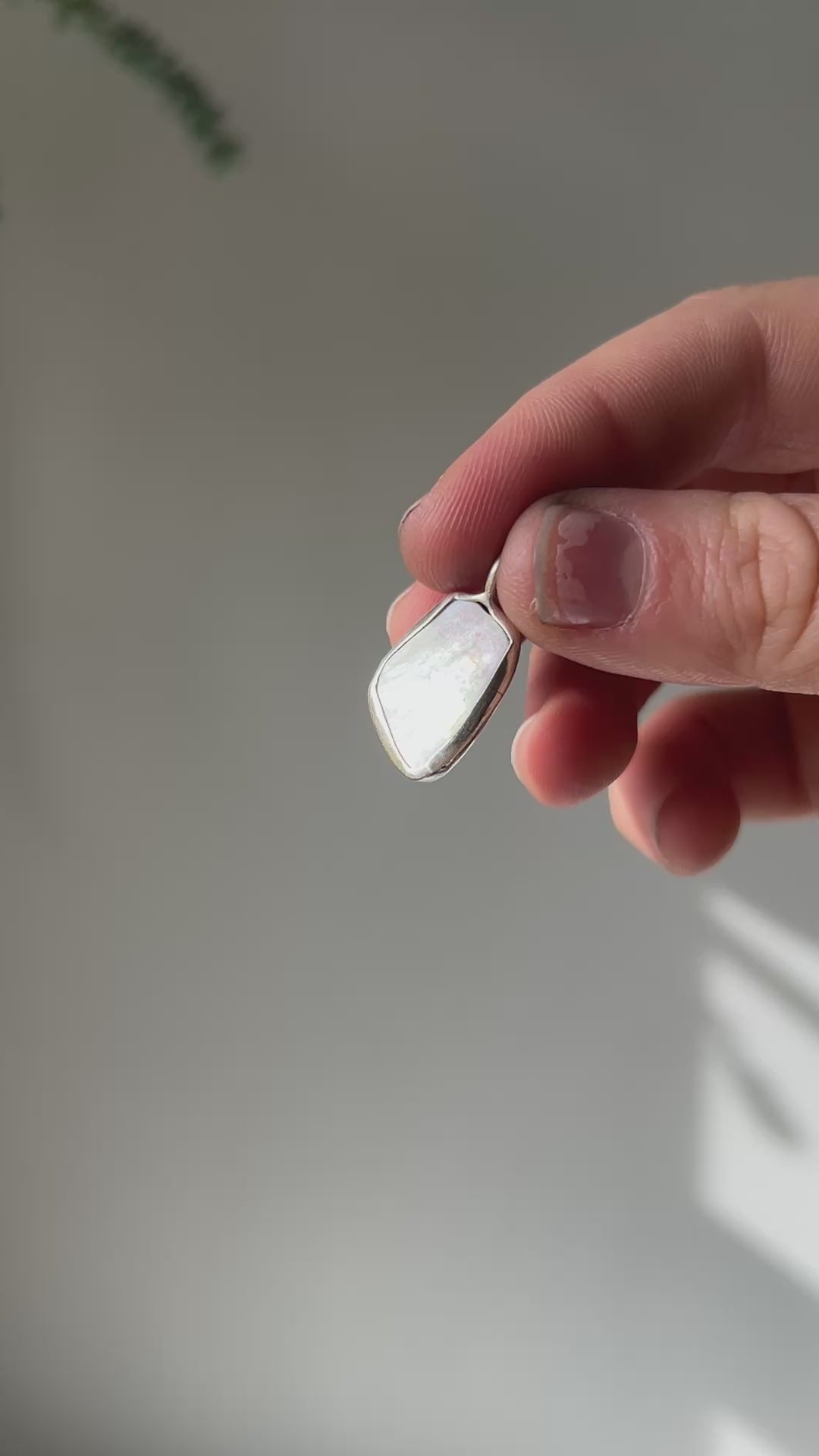 Dreamy mussel shell set in sterling silver. There is an open back so you can see both sides of the shell. I found this piece on my family’s beach in East Boothbay, Maine on Ocean Point.