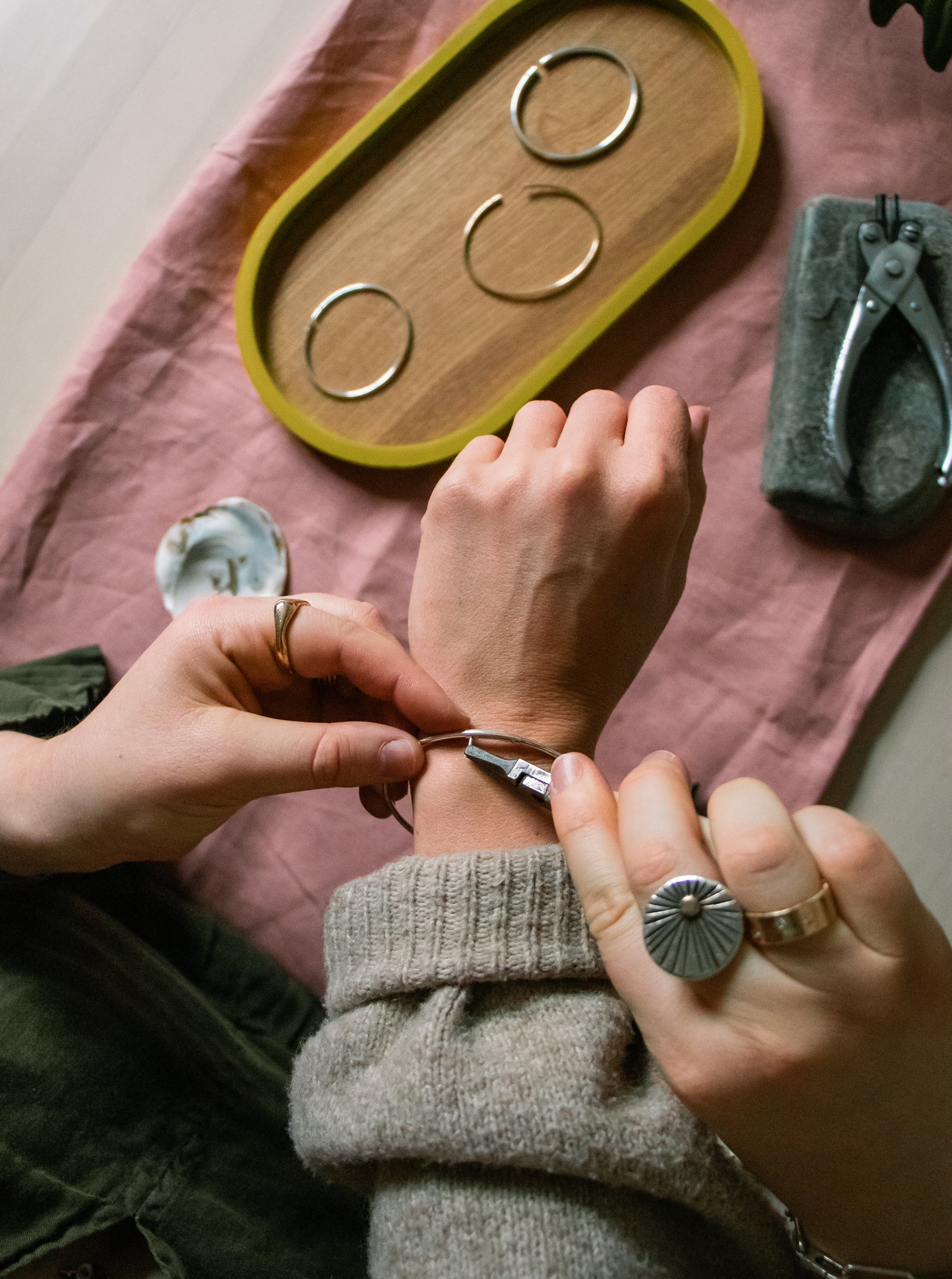 I am very excited to launch my new jewelry event - permanent bangles! Each bangle will be hand riveted onto you, creating a secure and everlasting bracelet you never have to worry about forgetting to put on.