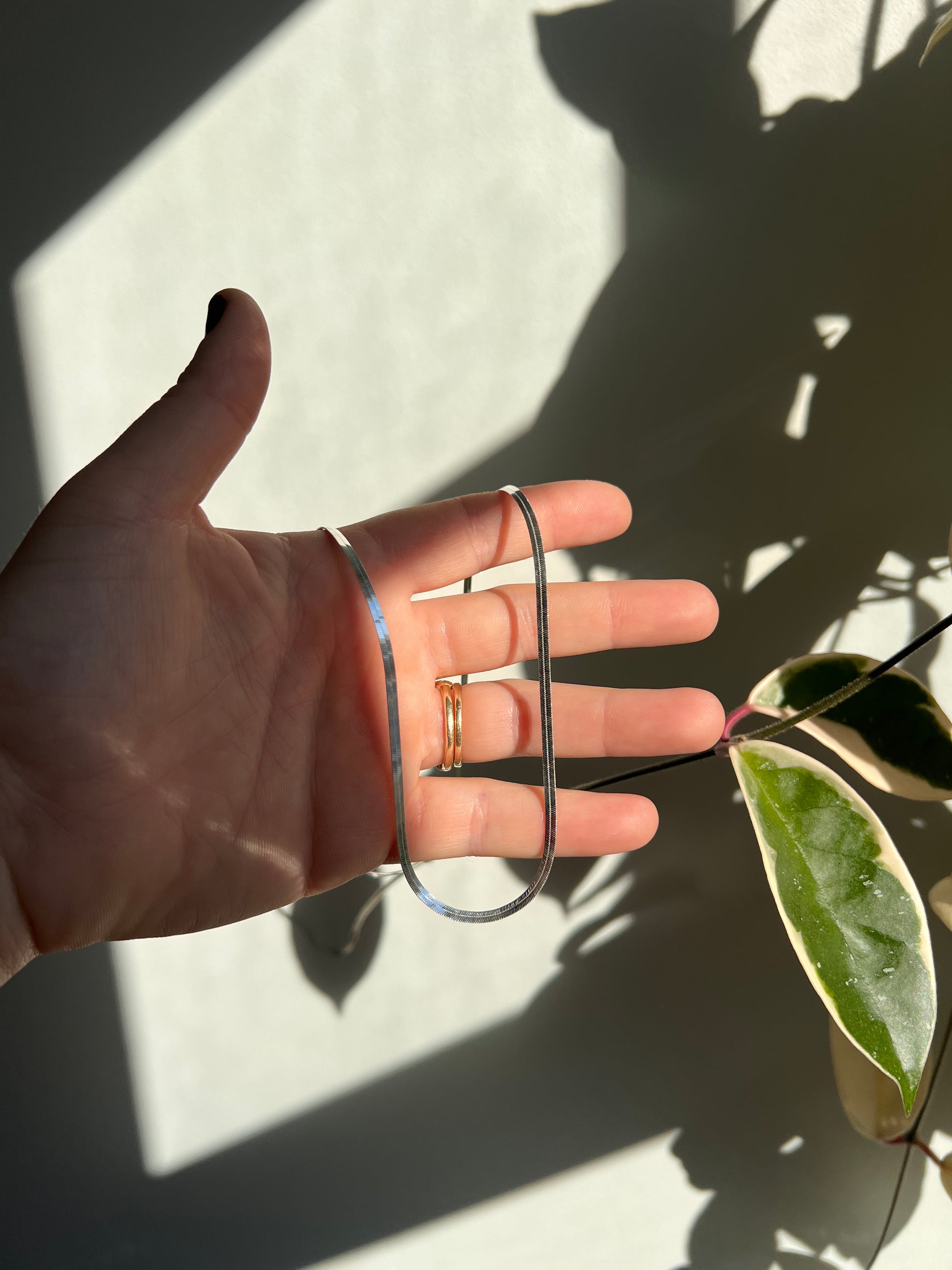 This classic herringbone silver chain is a staple you should always keep in your collection. It can be the ultimate layering piece or if you need a simple, yet elevated necklace to wear alone, this is your best friend!