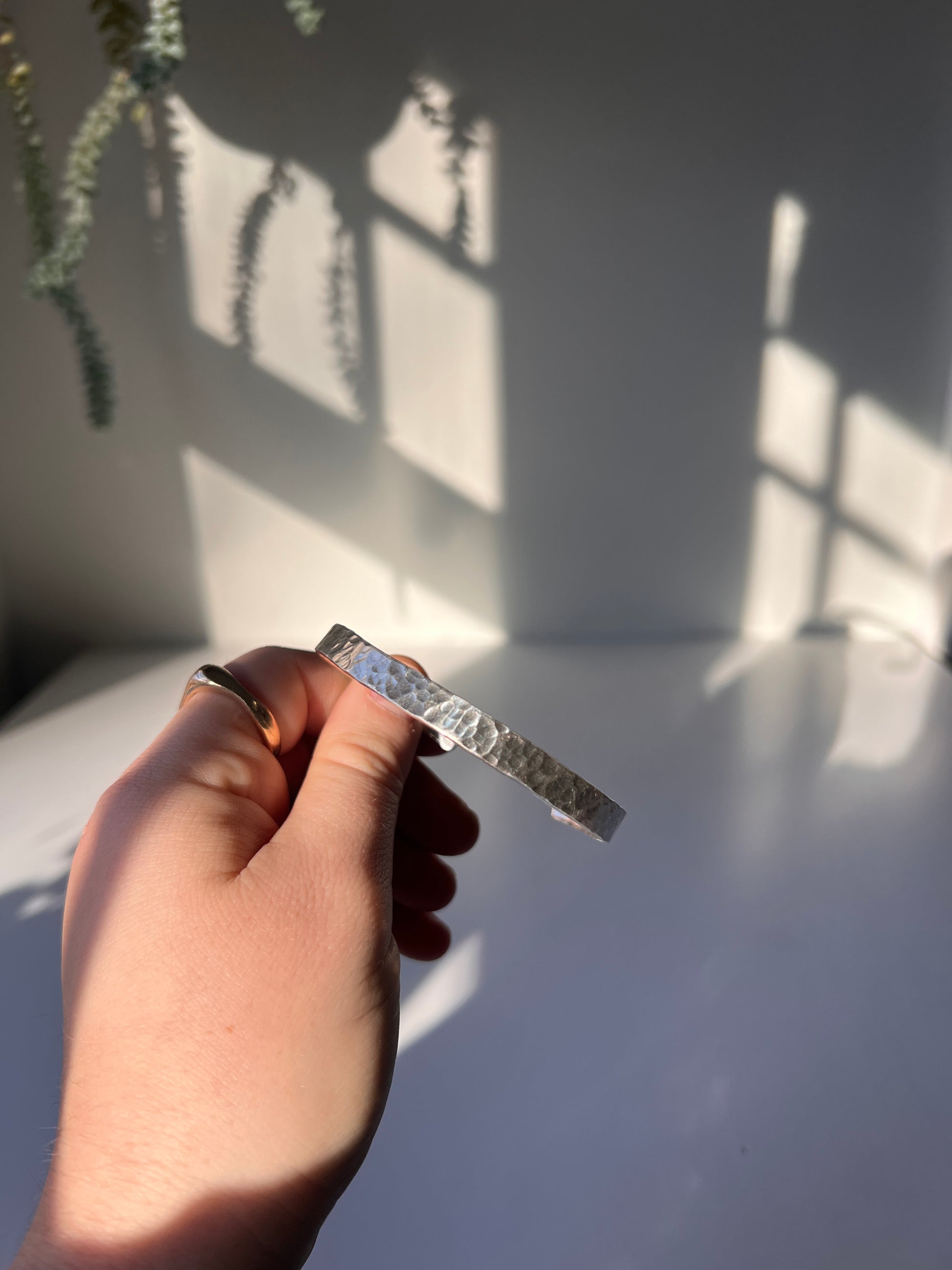 Thick sterling silver cuff. Size medium 6" cuff with a 1" opening. Can be sized up slightly.