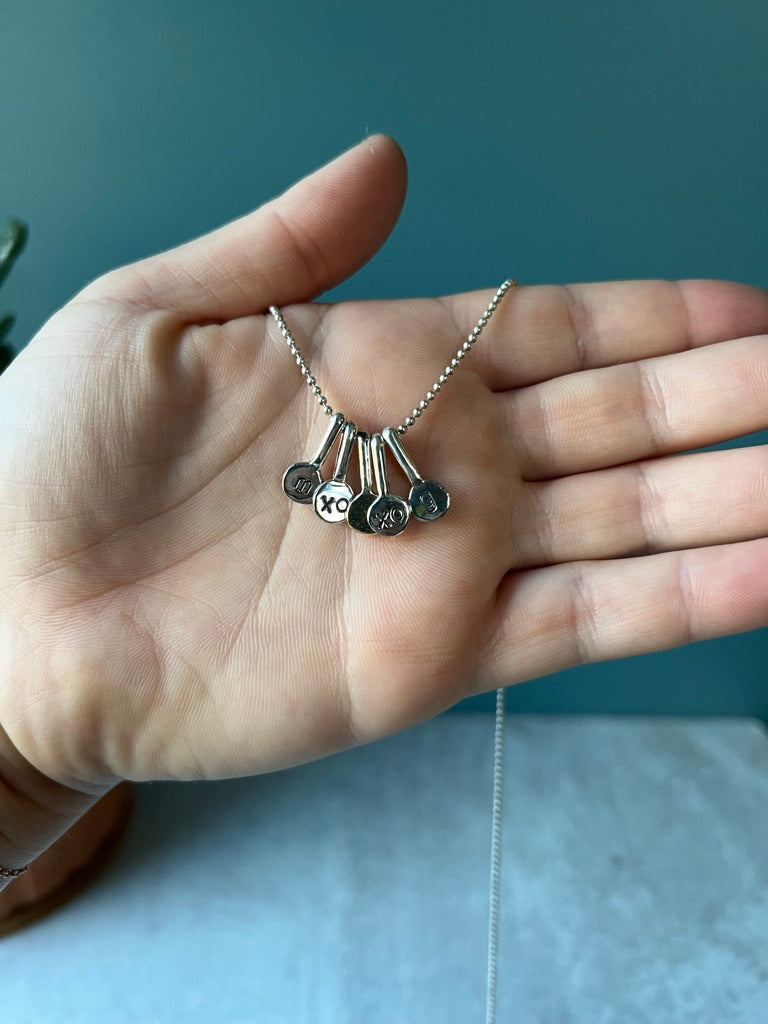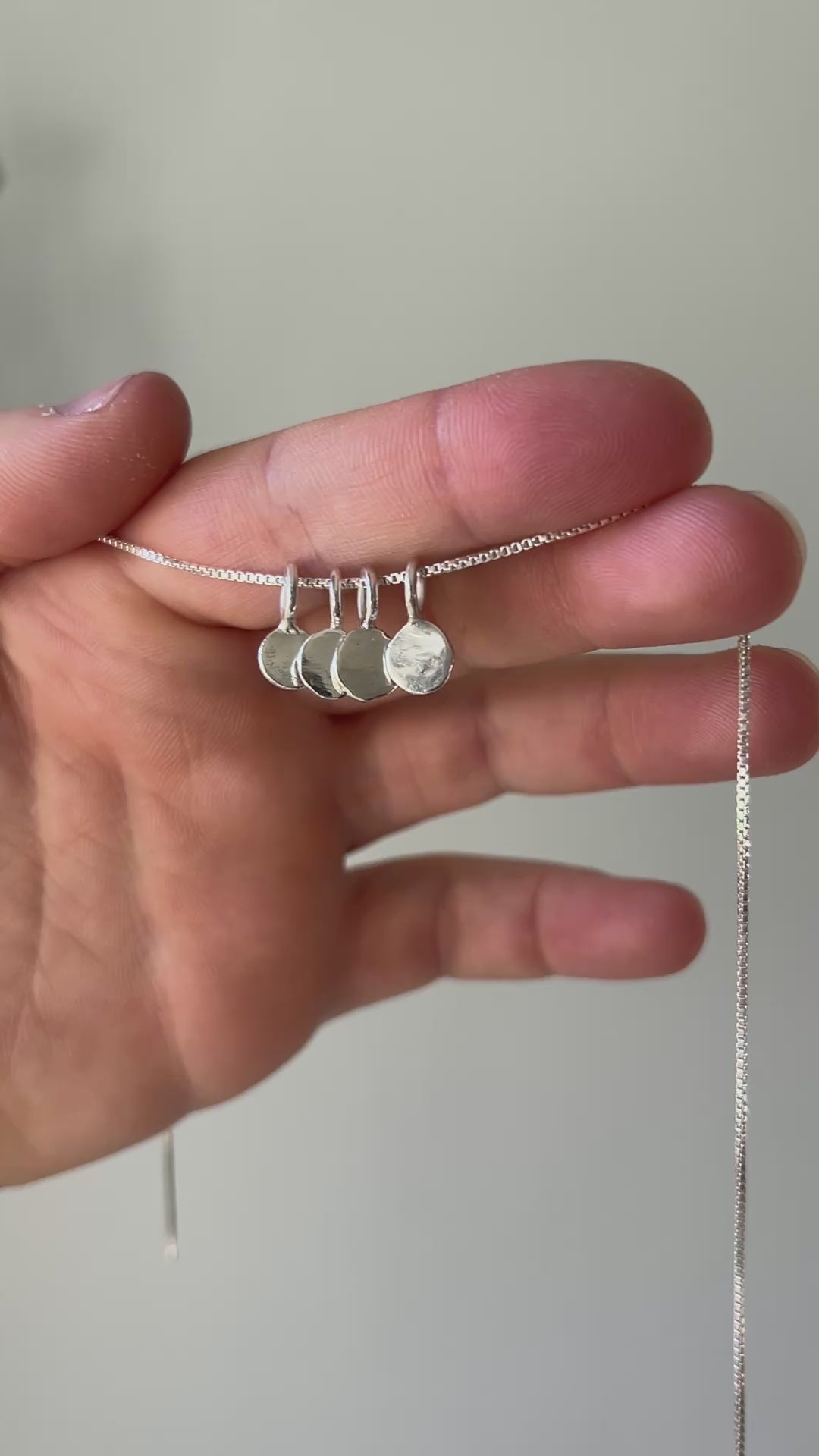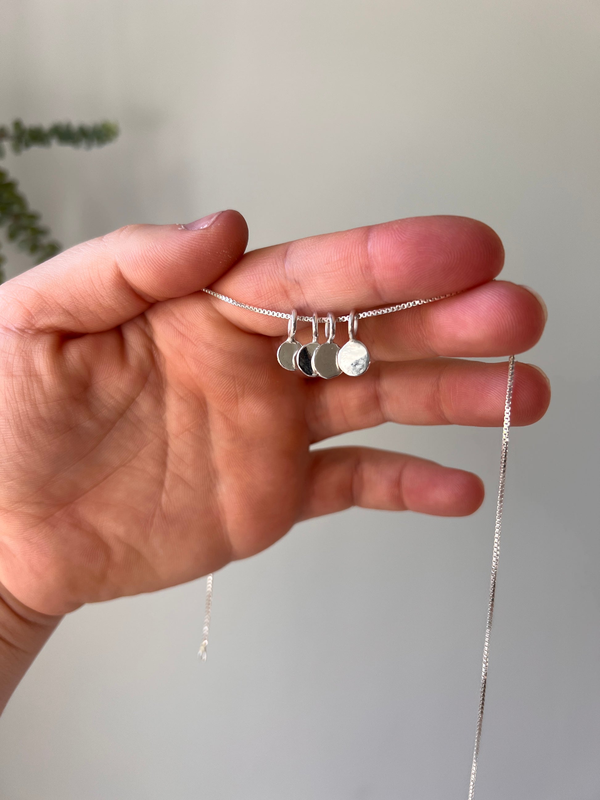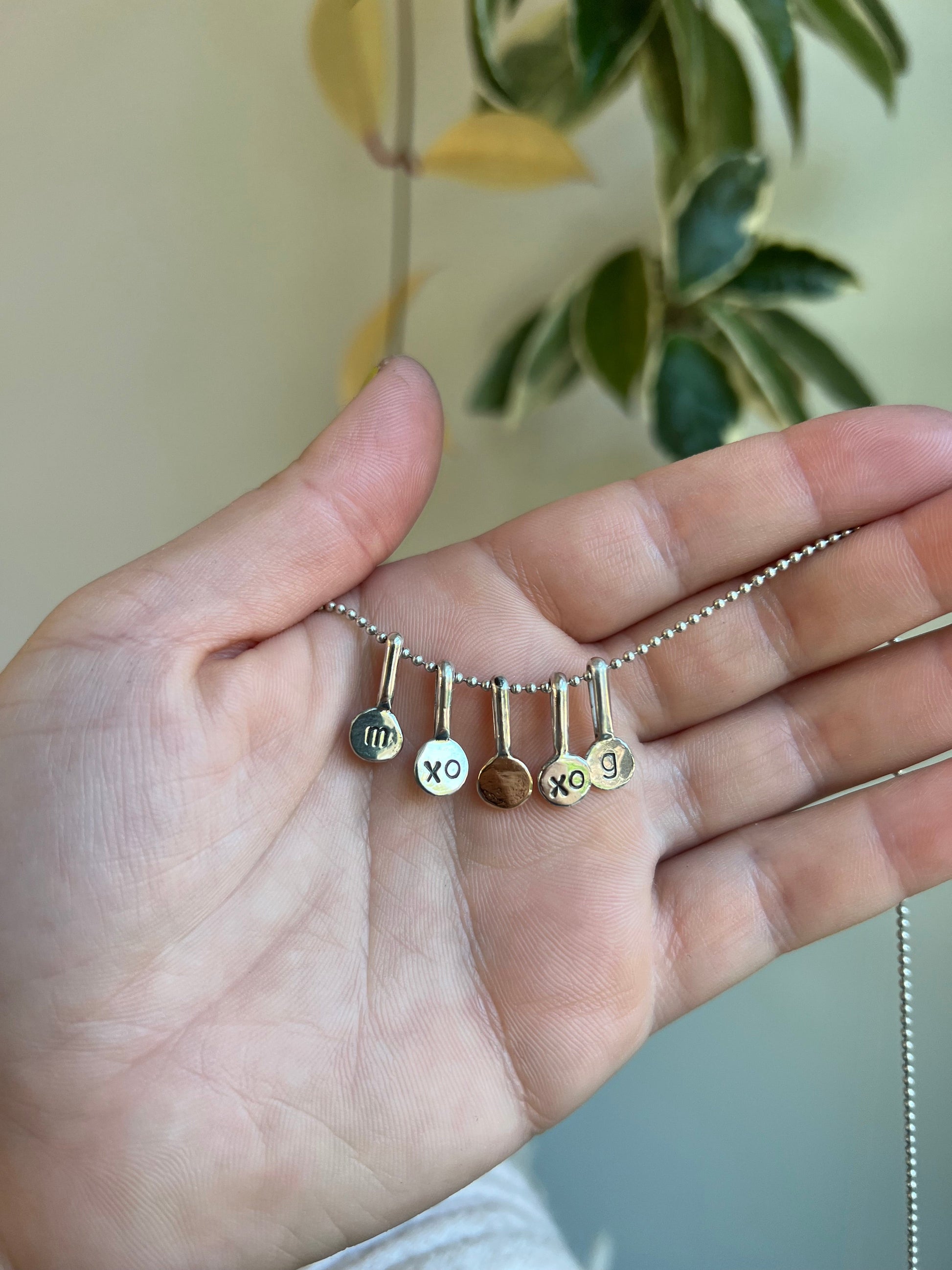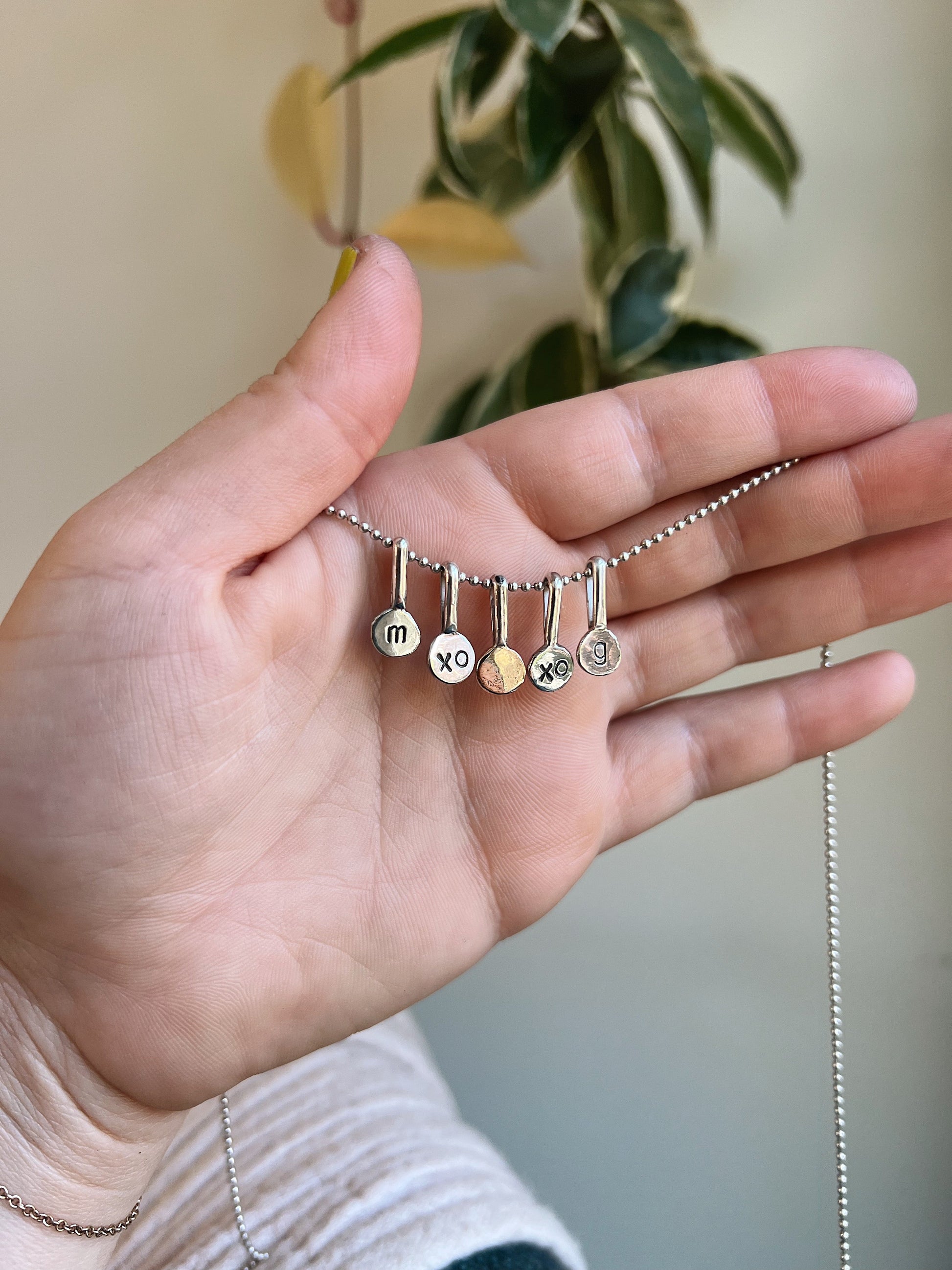 Sterling silver dot on a sterling silver chain. Pick which initial you'd like stamped on it or email me about a custom order.
