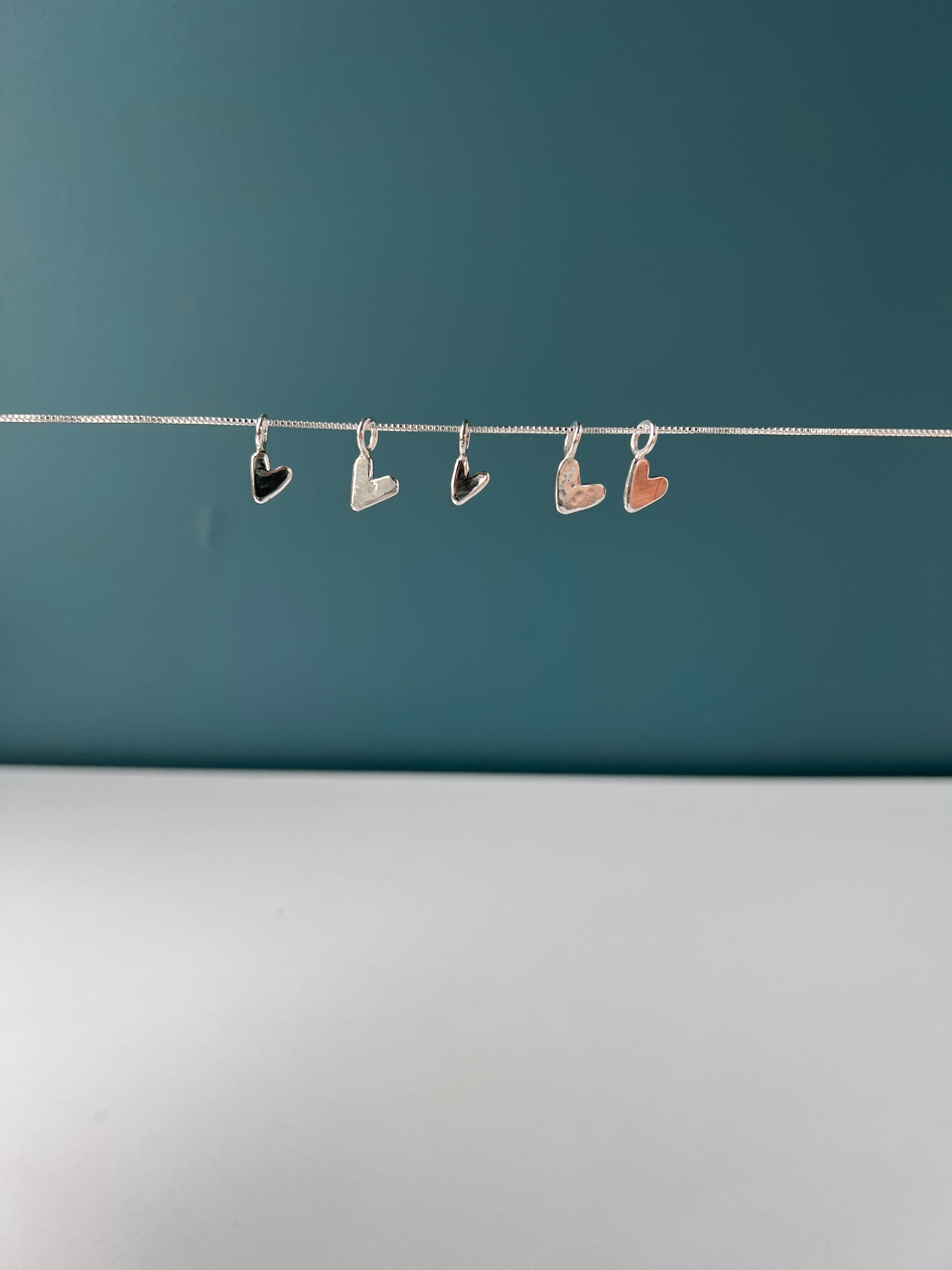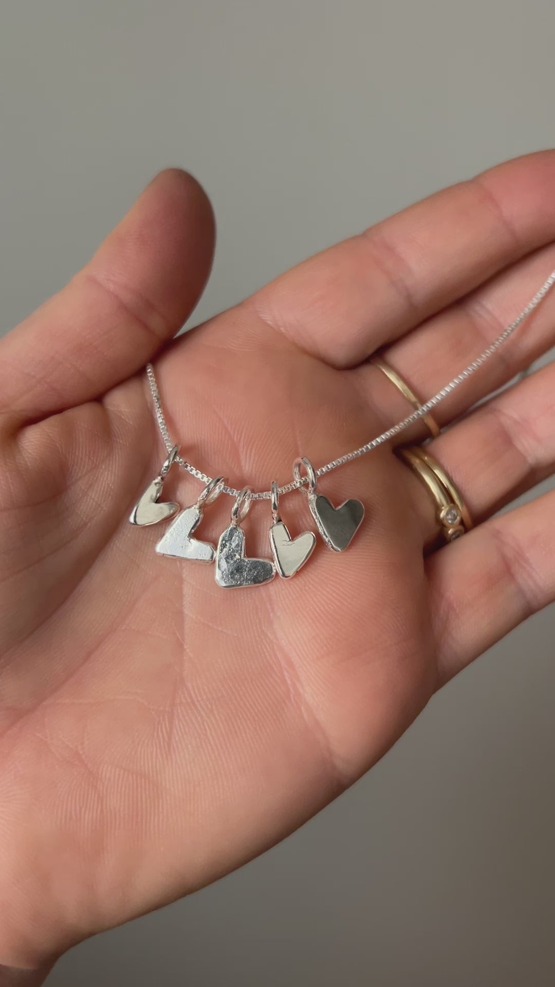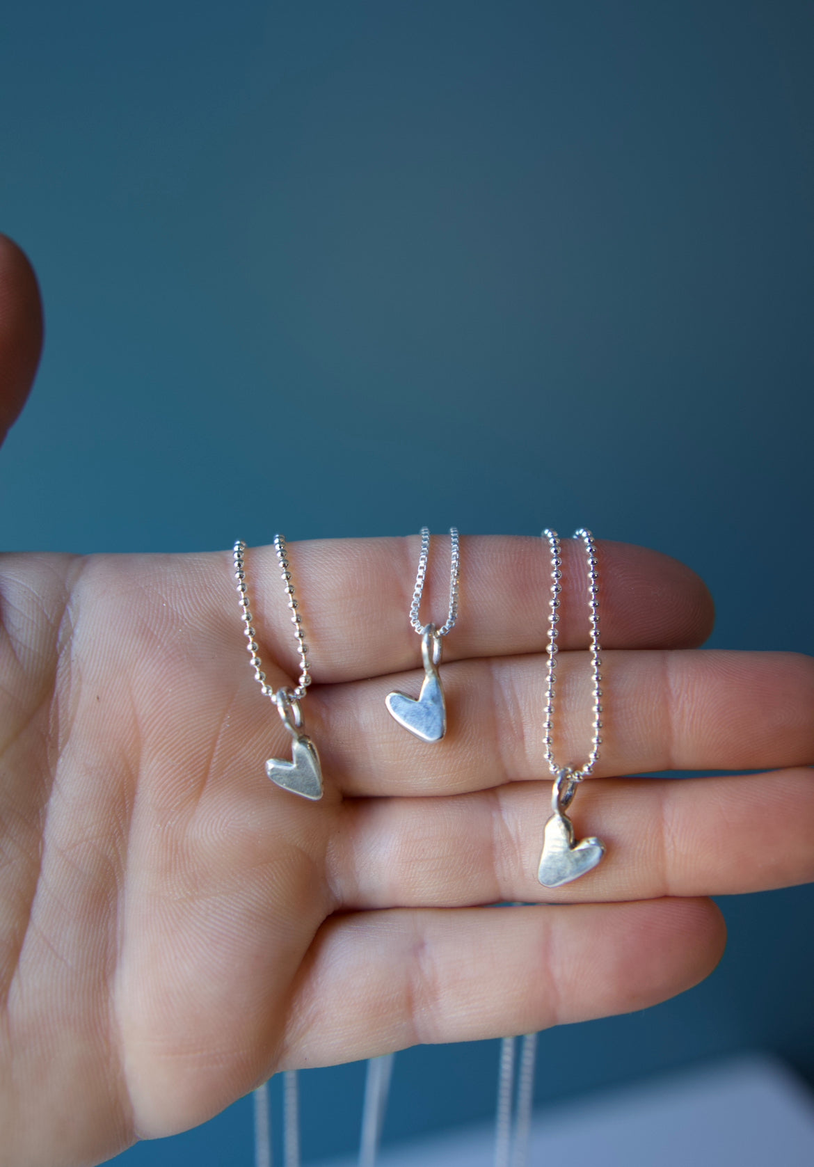 This listing is for one hand forged recycled sterling silver heart. Each heart is hammered, hand sawn out, shaped, and polished by me in my studio. Since they are hand made and forged you will see texture, that’s the beauty of handmade goods! With sterling silver chain.