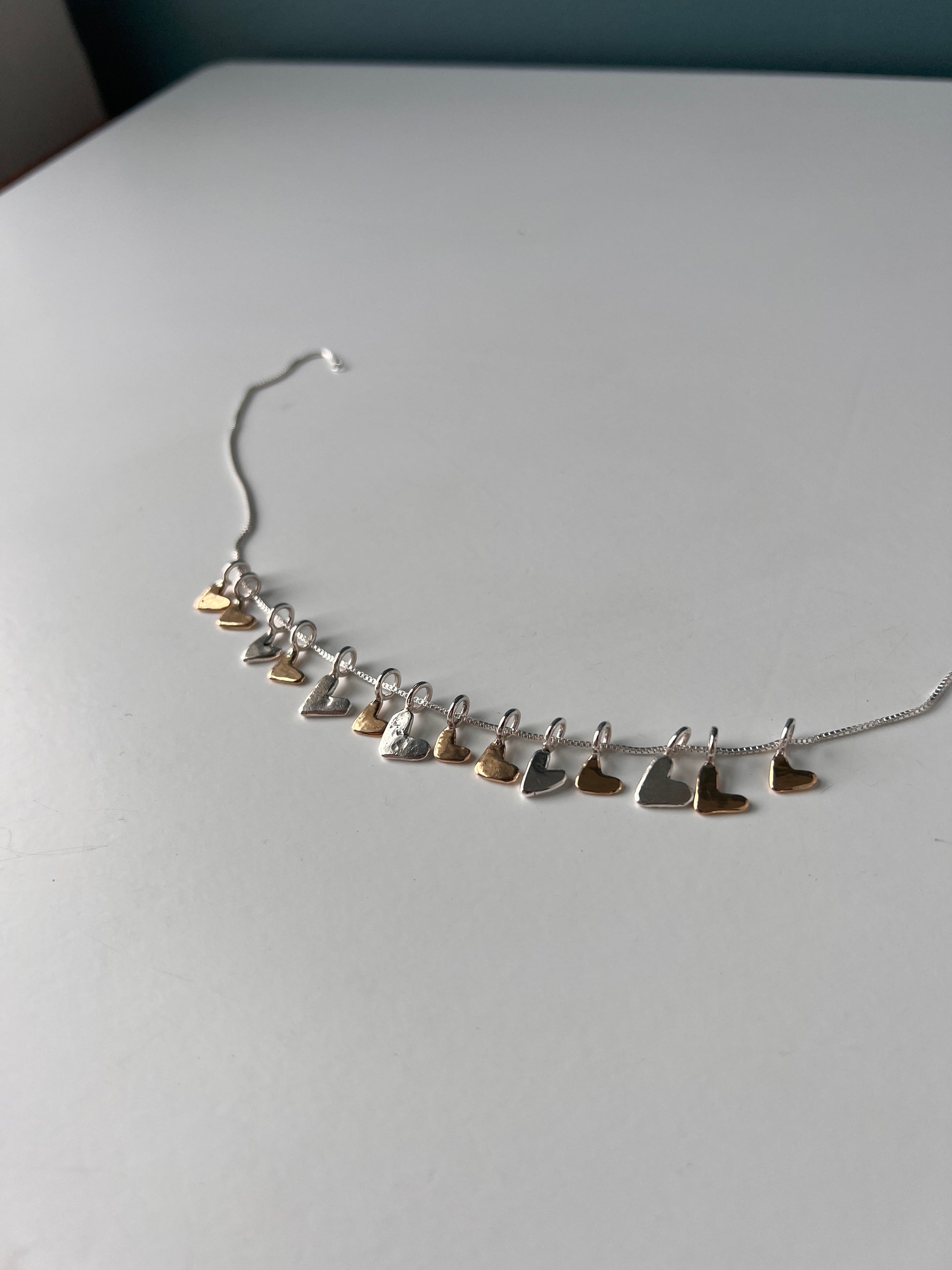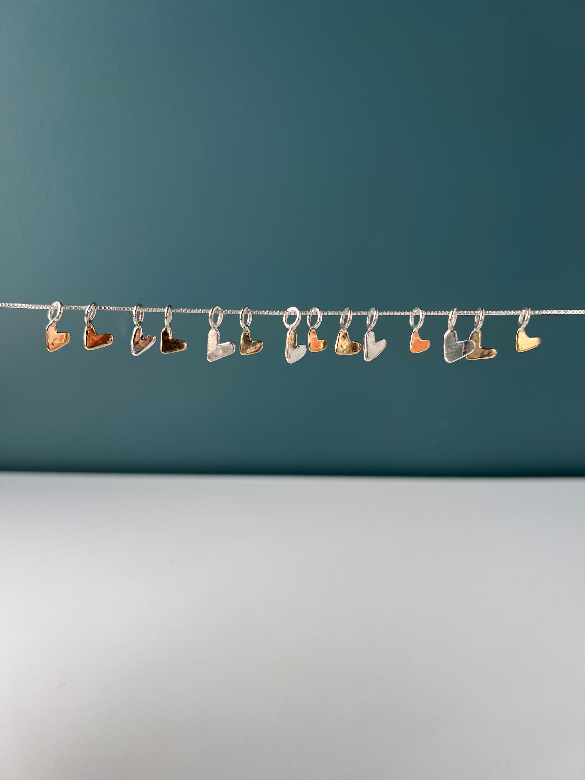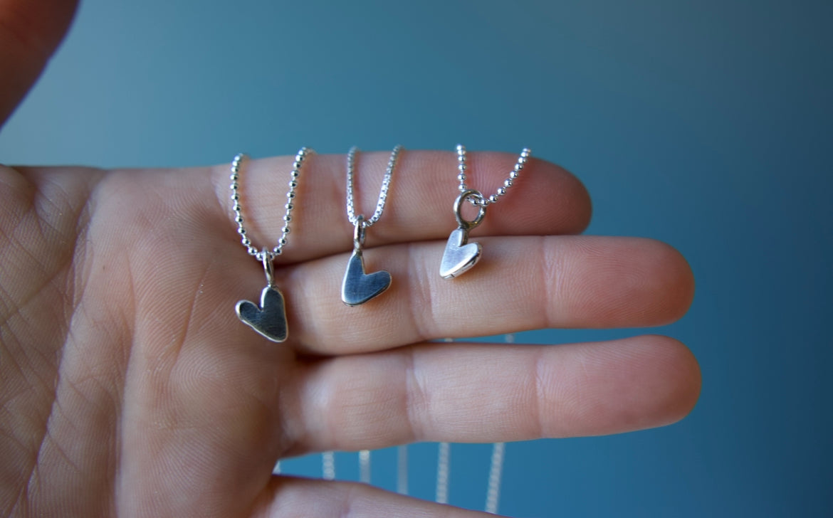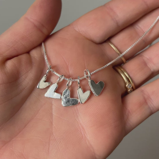 This listing is for one hand forged recycled sterling silver heart. Each heart is hammered, hand sawn out, shaped, and polished by me in my studio. Since they are hand made and forged you will see texture, that’s the beauty of handmade goods! With sterling silver chain.